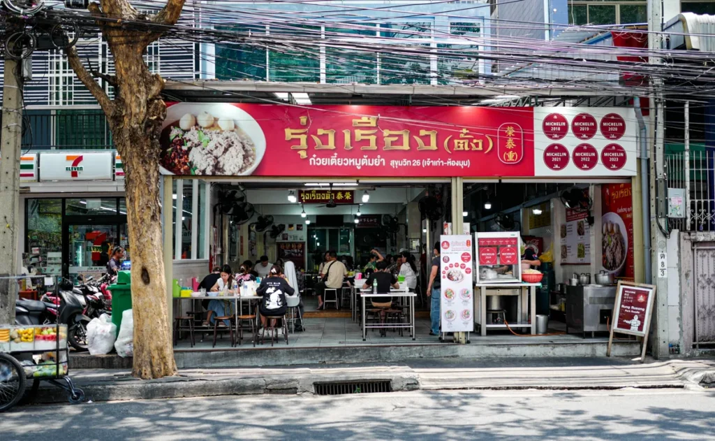 Dette er kåret til en av de aller beste restaurantene av Food & Wine i 2025. Restauranten som ligger i området som heter Yaowarat, ligger i 6. etg i noe som ser ut som et forlatt lokale. Men frykt ei. Når du kommer ut av heisen går du mot lyden i enden av det tomme lokalet. Bak døren finner du en restaurant det er verdt å merke seg. Sitter du ved baren har du fullt innsyn til kokkene og høye flammer. Rettene er thai, men med moderne tilnærming. Det smaker så godt! Vinene er på den naturlige siden. Deres thai-vri av en italiensk porchetta er å regne som et mesterverk. Mango Sticky Rice mousse er som den mest fluffy riskremen med thaismaker. Dette er et støyete, kult og vidunderlig sted å være.