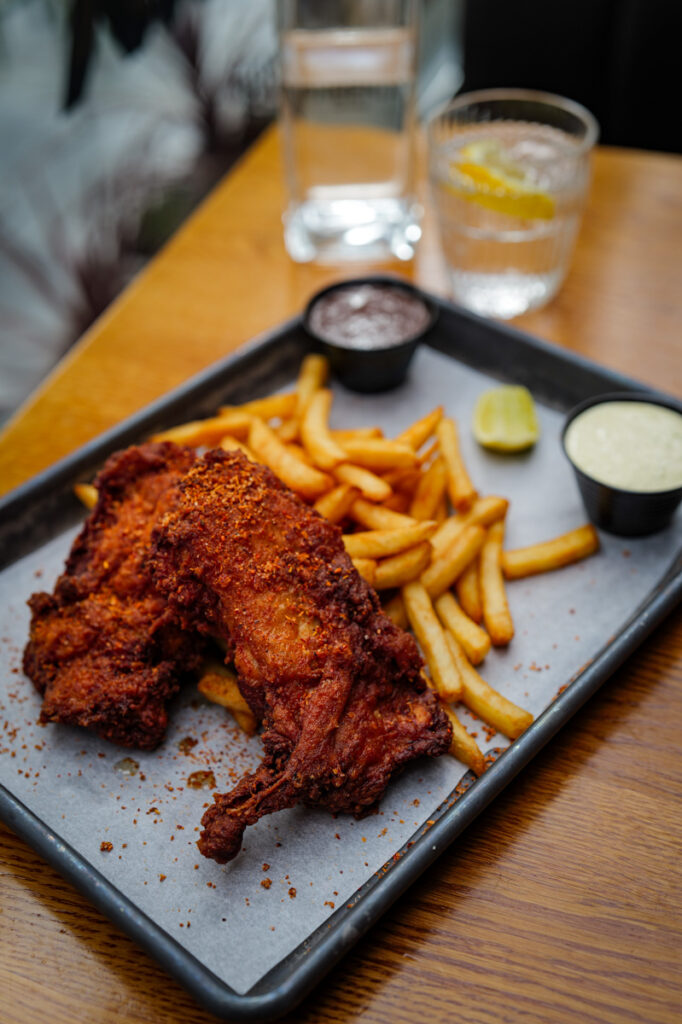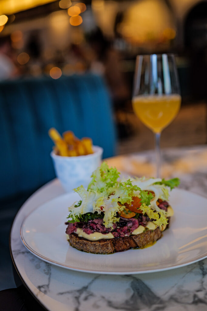 Werkland begynte altså fra scratch med menyen. Han kvittet seg med burgeren, som alltid er et populært produkt på en meny. Han lanserte heller Steak Sandwich, en generøs surdeigsblings toppet med skiver av perfekt stekt ytrefilet av okse, bakt hvitløk, chimichurri og salat med friske tomater. En slik eksklusiv “kakskiv” er et smart valg for et raffinert brasserie som dette. Deres trippelkokte pommes frites (først kokt, så stekt på lav varme i olje og så på høy varme) er supersprø og fluffy i midten. Dette er et must å bestille.