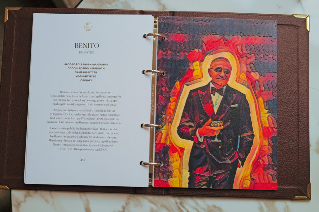 Cocktailmenyen som for tiden er tilgjengelig i baren (frem til utgangen av neste år), har blitt til ved å studere arkivmateriale på Nasjonalbiblioteket. Deretter har Øyvind hatt samtaler med personer eller etterkommere av de som drinken er oppkalt etter.