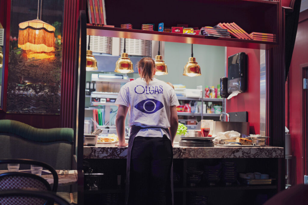 Det koker på Olgas når jeg er her til lunsj. Kjøkkensjef Gjermund Solberg serverer sjuke retter. Tallerknene som kommer på bordet er rene gåsehudopplevelser. Dette er enkle retter i utgangspunktet. Comfortmat som du craver. Men de er så ufattelig godt laget og perfekt balansert. At en salat skulle få meg til å ville vurdere å avlyse flyet hjem for igjen å sette meg ned å spise den, hadde jeg aldri trodd jeg skulle oppleve. Og det blir ikke bedre når vodkapastaen kommer på bordet. Da vurderer jeg seriøst å flytte tilbake til Trondheim. Fuck Oslo og livet mitt der, liksom. Men jeg tar meg i det og kommer til fornuften igjen. Hvis det egentlig finnes noen fornuft.