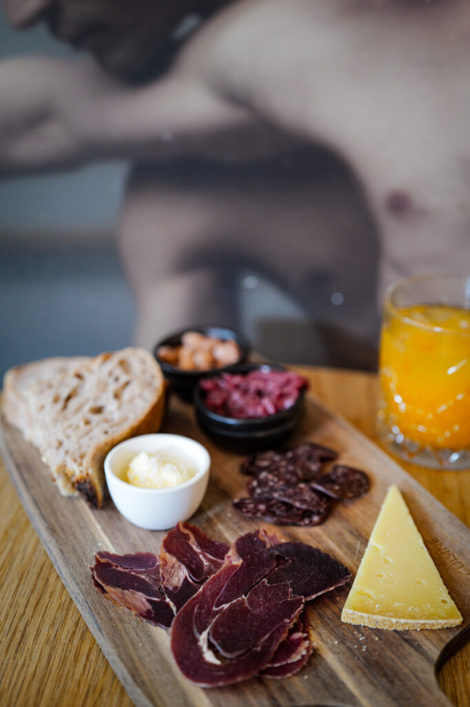 Jeg smaker på deres “Ost- & spekefjøl” med Røros-rein spekeskinke og elgpølse fra Stensaas, Seterost og Grindal, surdeigsbrød fra ISAK, løk- og tyttebærkompott og salte mandler. Dette er det jeg snakker om. Lokalmat på ei fjøl. Det er lett å diske opp med parmaskinke og manchego-ost, men vi har faktisk spekemat og oster som vi på alle måter bør vise frem.