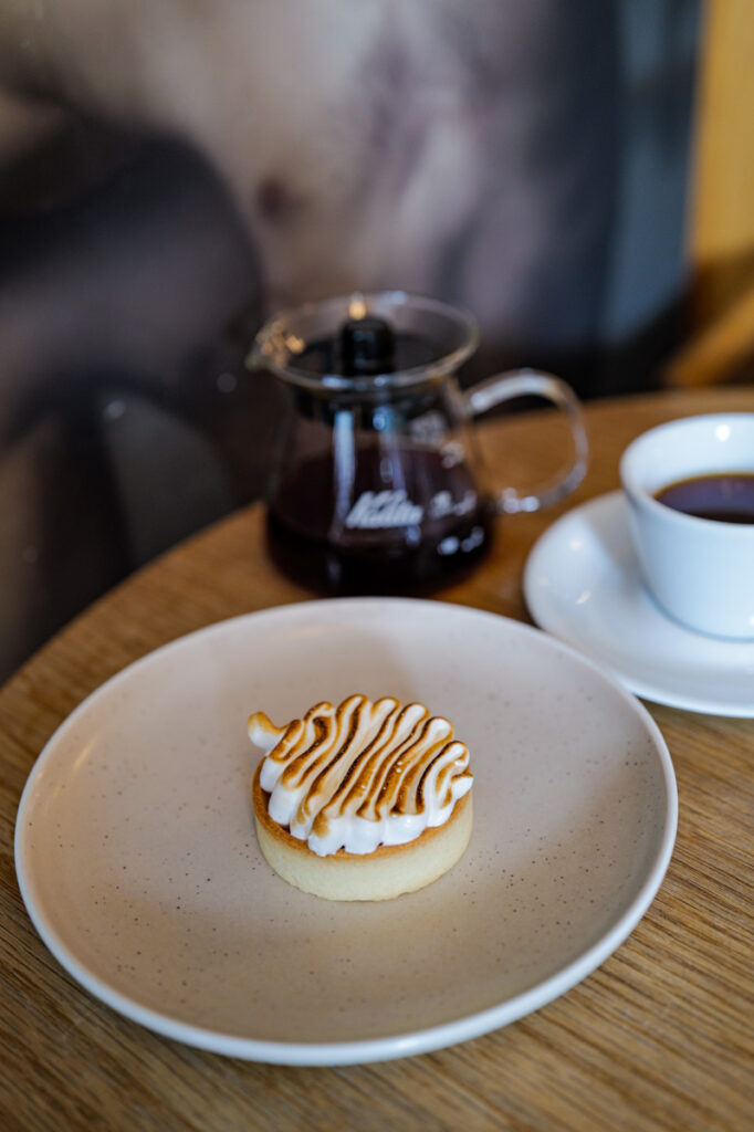 Kaffe fra Pala og syrlig hjemmelaget sitronterte med tynt skall og søt italiensk marengs på toppen som avslutning er “bærre lækkert”.