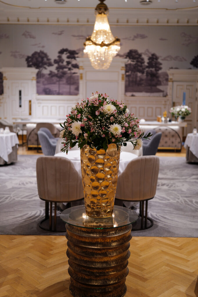 Speilsalen er et vakkert lokale i hjertet av Britannia Hotel med vinduer ut mot vakre Palmehaven. Det er speil på veggene (derav navnet) og gulldetaljer. Du skjønner med en gang at du er et eksklusivt sted.
