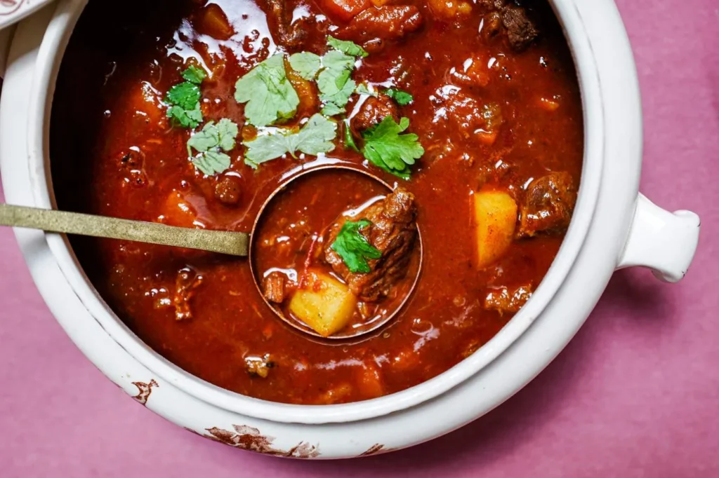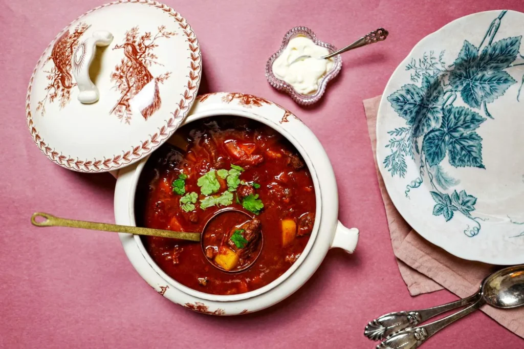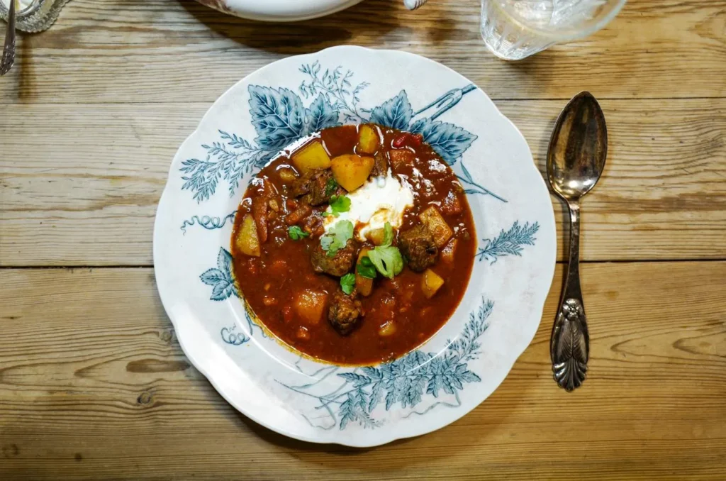 Julie Ilona Balas sier dette: – En ting er veldig viktig, du bør absolutt bruke ungarsk paprikakrydder. En blanding av søtt og pikant! Dette er den eneste paprikaen i gryta, så det er megaviktig med godt paprikakrydder for å få riktig smak. En annen ting som er ganske viktig, men ikke et absolutt must, er å bruke andefett som start på gulasjen. Se oppskriften til Julie her