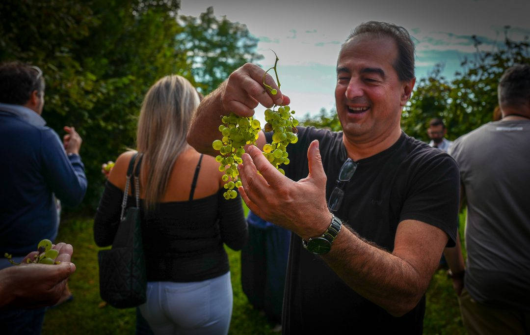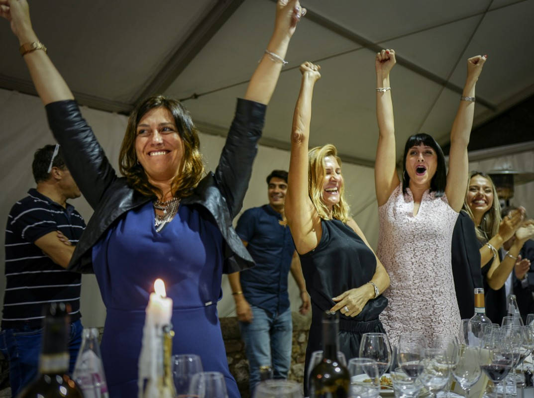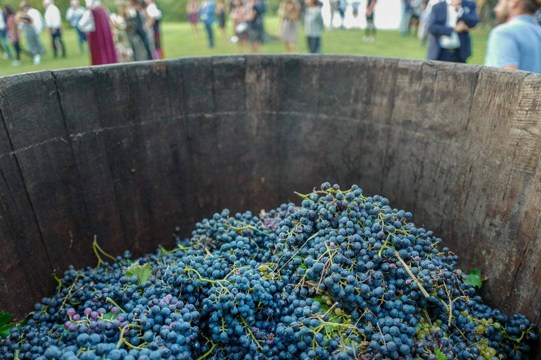 Vinnerlaget av Harvest-konkurransen annonseres og vinnerne klarte å plukke hele 218 kg druer på 8 minutter.