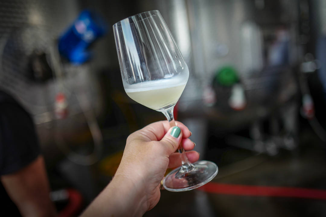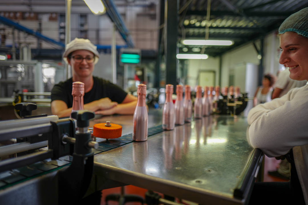 Fabrikken er det gamle lokalet til Bottega fra den gang de produserte 16 000 flasker prosecco i året. Nå produserer de 16 000 flasker på en halv dag.