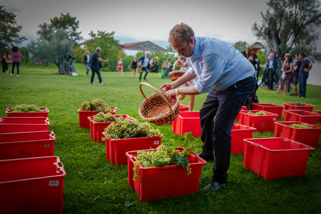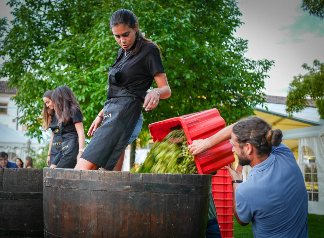 I går var bare oppvarmingen. I dag blir det virkelig fest. I dag skal det tråkkes druer og danses på bordene. Dette er ofte noe man bare sier. Ingen gjør dette i virkeligheten. Sandro Bottega gjør det.