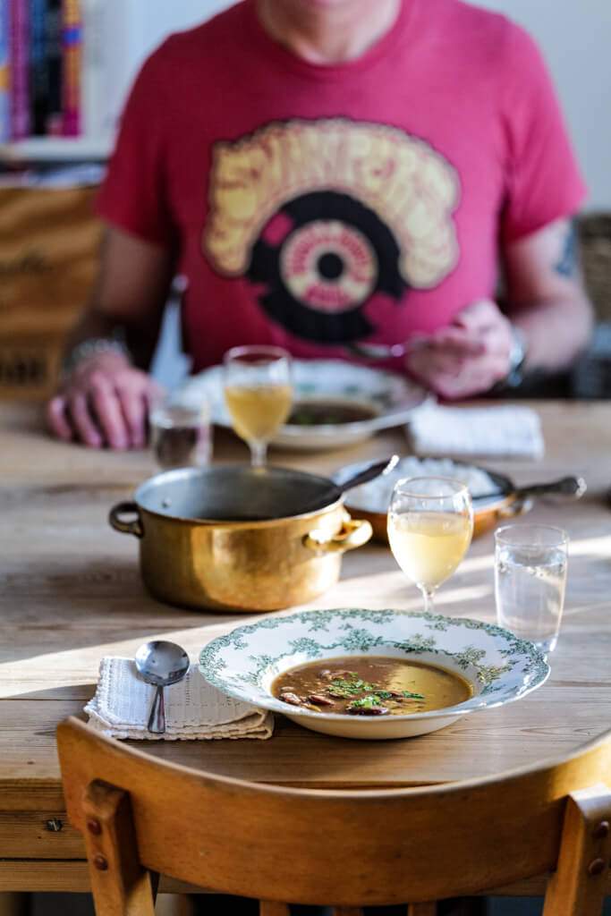 - Kok ris og server til denne fantastiske gryten. Har du tatt vare på selleribladene grovhakker du disse og strør over gryten ved servering.