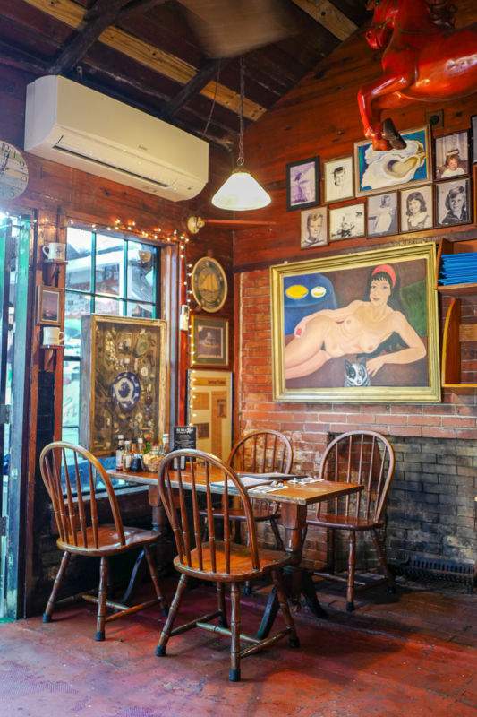 Jeg elsker denne kafeen. Interiøret er av tungt, lakket treverk, akkurat som på en båt. Kunsten på veggene og bildene forteller om Key West i gamledager. Det er spesielt et maleri jeg har forelsket meg i. Ved første øyekast ser det ut som et lettere vovet bilde malt av en kunstner fra Paris. Men så ser man en Key lime pie øverst i hjørnet og så skjønner man at bildet er malt av en lokal kunstner (tror jeg i alle fall).