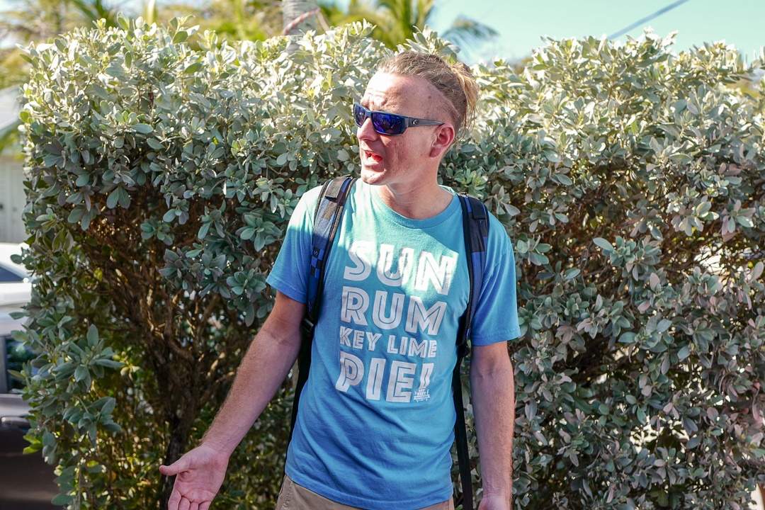 Guiden vår, Tracy er en bra fyr. Han forteller levende om Key West og hva han mener man bør oppleve. Han råder oss også alltid til å lese menyene godt når vi går ut for å spise. Står det «shrimps» er det mest sannsynligvis importerte reker. Det må stå «Key West pink shrimps» for at det skal være lokale reker, sier han.