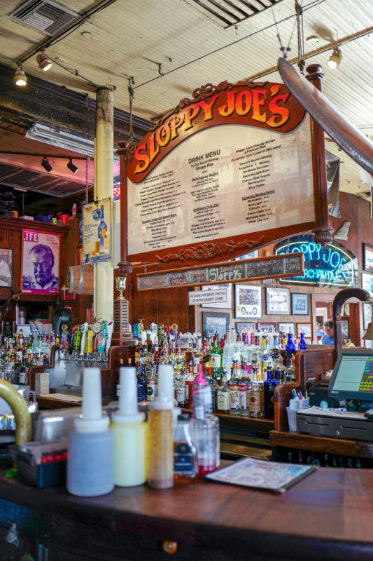 Hemingway var glad i et glass. Sloppy Joe’s var hans foretrukne bar. Den finnes fremdeles i dag og er en stor turistattraksjon. Det var et helt annet sted da Ernest vanket der, men ta en tur innom og se på bildene på veggen og ta evt en drink.