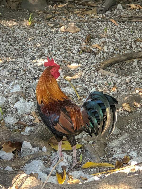 Når man går i Key West er det umulig å ikke få med seg hanene og hønene som fritt spankulerer rundt. Det ligger en veldig god historie bak akkurat dette. Hanene ble fraktet over fra Cuba og de ble brukt i kampsport. Cock fight var faktisk vanlig helt frem til det ble forbudt på midten av åtti-årene – lenge etter at det ble forbudt i andre deler av USA. Det ble forbudt å ha dyr i bur og derfor måtte haner slippes fri. Og der det er haner er det høner, og vips var det plutselig mange nye fjærkledde innbyggere i Key West.