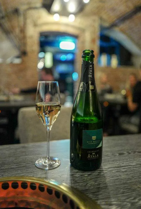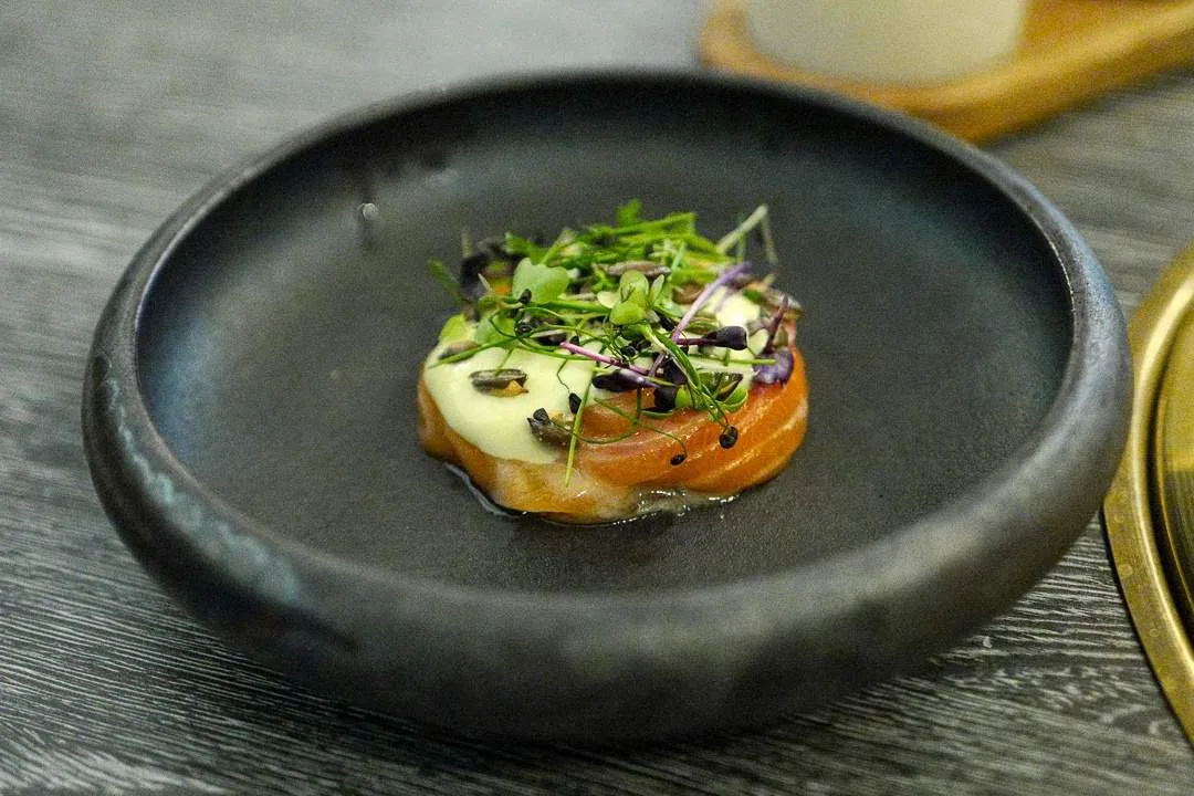 Jeg prøver også en helt fortreffelig sashimi med laks, mirin og grønn chilimajones. Lett, frisk og en perfekt ganerenser før kjøttrettene starter.