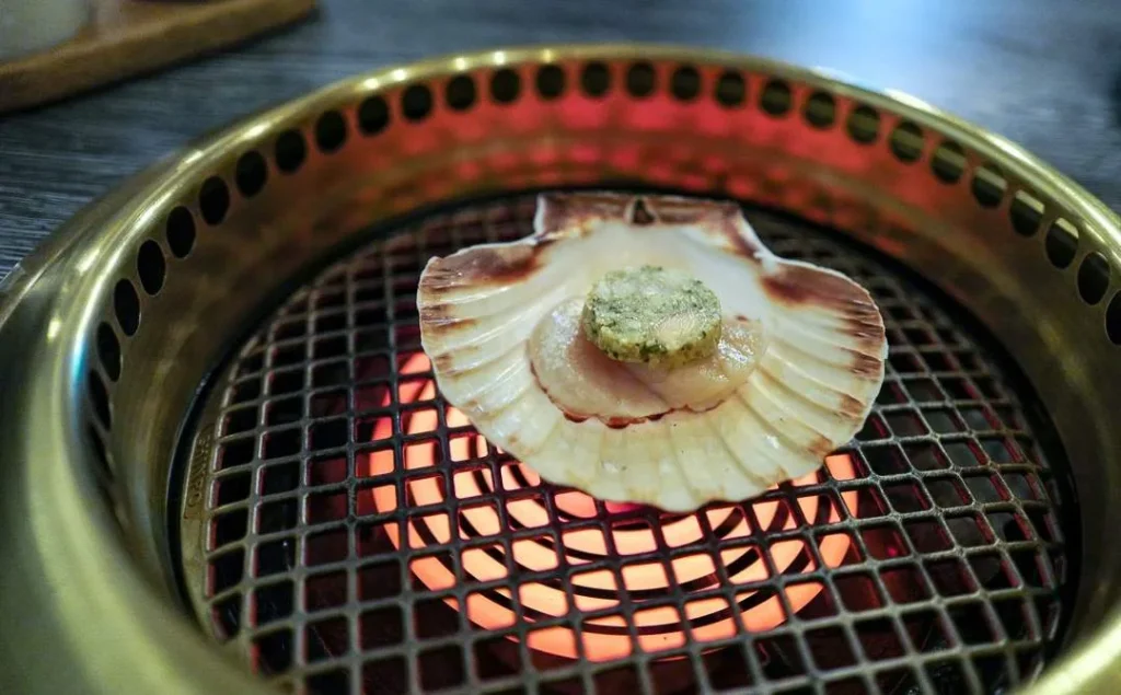 Retten som jeg tester ut er kamskjell med beinmargssmør og kålsalat ved siden av. Kamskjellet legges på grillen og smøret smelter mens kamskjellet stekes til du er fornøyd. Husk, det er du som er sjefen ved grillen.