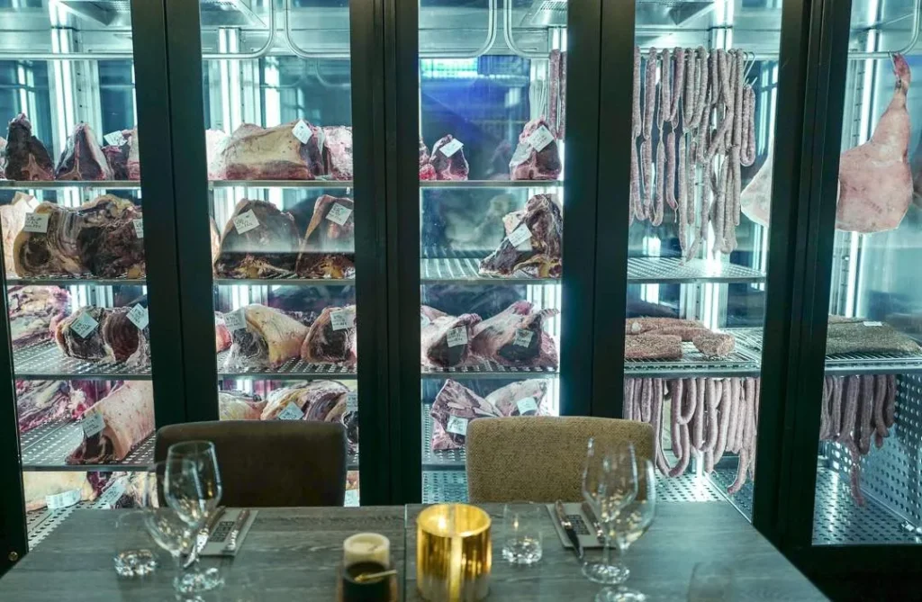 Interiørmessig er de fire rommene som utgjør kjellerlokalet til Jonathan Grill forskjellige. Det er også forskjellig konsept i deler av restauranten. I et av rommene henger et modningsstap der store kjøttstykker henger. Også pølser henger i lange baner. I denne delen er det a la carte som frister gjestene. Det er der kokkene virkelig kan utfolde seg.