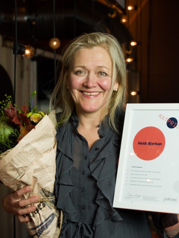 Heidi Bjerkan – Vinneren løfter vanligvis bonden frem snarere enn seg selv, og er en pioner både for sin egen region og resten av mat-Norge. Antallet prosjekter Bjerkan har på komfyren samtidig, uten et eneste kompromiss, tar pusten fra juryen. Hun har laget en hel familie ut av restauranten Credo, den mer rustikke Jossa, samt Fannremsgården og Skjølberg søndre, et felleskap og samhold som gjennomsyrer alt hun tar i. Om ikke det var nok, er hun initiativtaker, medeier og motor på Vippa i Oslo, i tillegg til at hun alltid stiller opp for både konkurrenter og kollegaer når det trengs et løft.