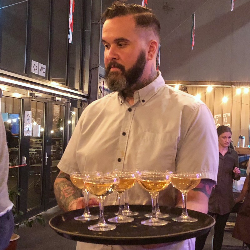 Inne i chambre séparèe’n til Vippa, som egentlig bare er en krok av hallen, er det pyntet flott og høstlig. Vi får et glass champagne servert av bartender Xuseen Simon-Miskell, som også mikset noen helt herlige cocktails på Super Taco Friday.