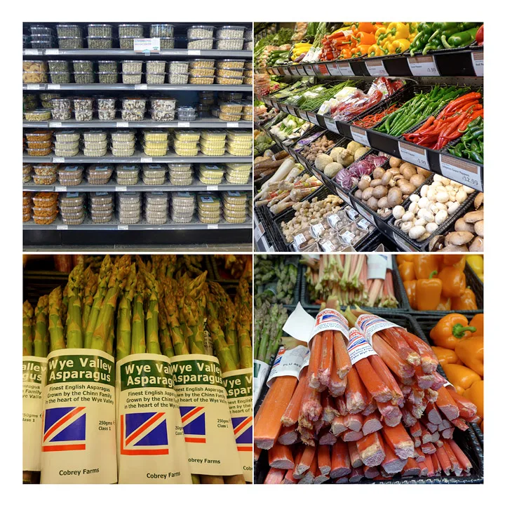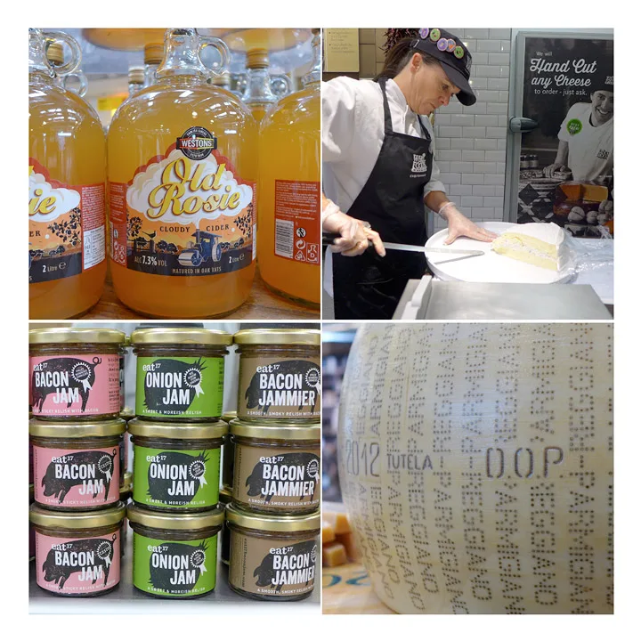 Nøtter og frø på rad og rekke. Fersk lokal sopp. De første lokale asparges og rabarbra.Maya lager fersk juice i butikkens egen juiceavdeling. Ferdig oppskåret frukt i posjonspakker er praktisk å ta med seg. Butikken har egen krydderavdeling.Røkt cheddar-popkorn. Jeg elsker (som du sikkert har fått med deg) popkorn og måtte selvsagt smake. Helt nydelig! Krydder fra den deilige krydderavdelingen. Tapp vin på flaske? Hey, why not? Whole Food Market har verdens herligste ost- og spekematavdeling.Øko-cider, trøffelost, bacon jam (!) og en seriøs parmesan!Her får du villfanget skalldyr. Scampien er sertifisert. Whole Food Market har eget røkeri i butikken.Lokalt kjøtt av høy kvalitet fra gårder i Glouchestershire .