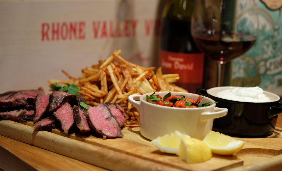 Vi drakk en nydelig Côte du Rhône til: Jean David Côtes du Rhône. Den er en skikkelig allsidig vin som til og med går til fisk.