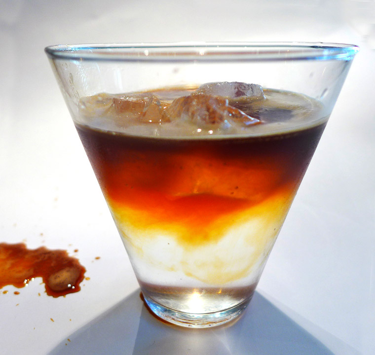 Dette er ikke iskaffe slik du kjenner det. Dette er en iskaffe tonic. Det er ikke jeg som har funnet opp dette, for dette er faktisk en iskaffe som du kan finne på trendy kaffebarer rundt omkring i verden om dagen. Du fyller glasset nesten opp med isbiter og tonic. Så brygger du en espressokaffe med lite bitterhet og heller over tonicen. Resultatet er en frisk og annerledes iskaffe. Jeg måtte prøve denne oppskriften med en gang jeg kom over den, og det blir ikke siste gang jeg lager meg en slik en. Dessuten er jo tonic (og gjerne gin) veldig hipt for tiden. Det kommer jeg tilbake til på bloggen snart.