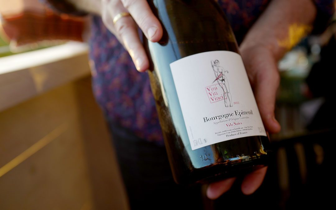 Vi får servert en nydelig pinot noir fra Vini Viti Vinci Bourgogne Epineuil som står perfekt til maten.