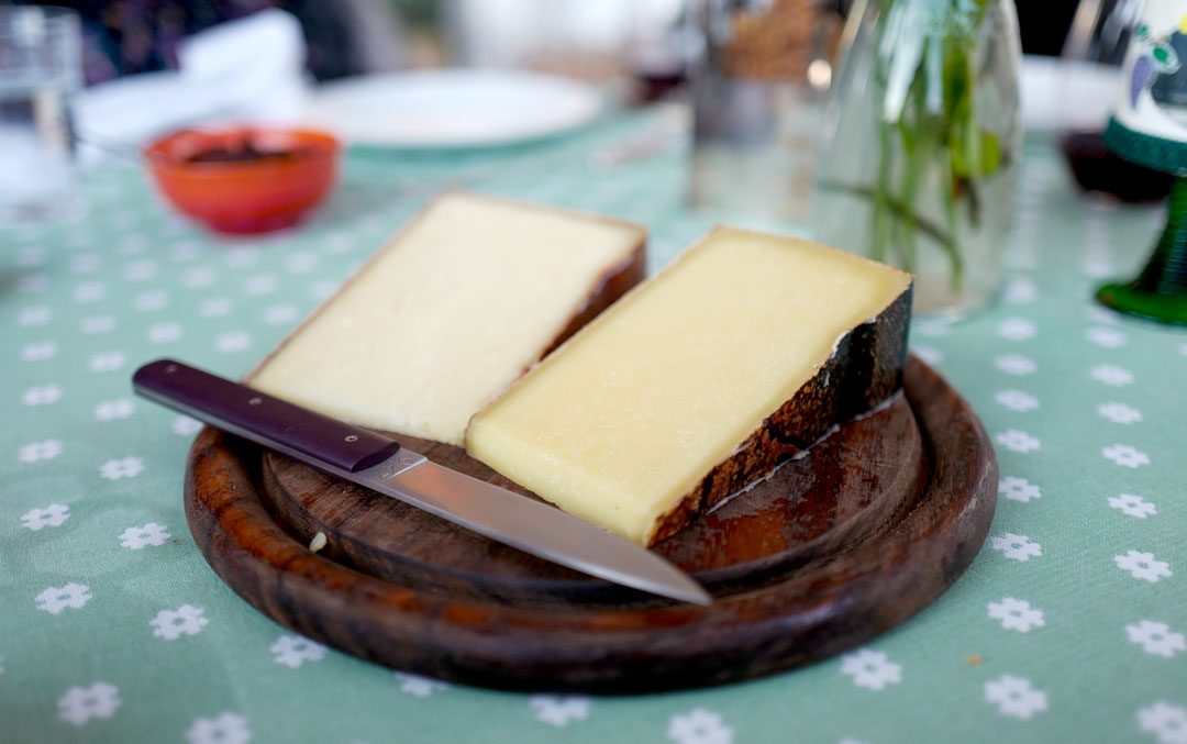 Ostene kommer inn og det er ikke snaue porsjoner. På en treplatting får vi et raust stykke Vully Rouge (lagret i 6 måneder) og tilsvarende størrelse av Vully Resèrve Noir (lagret i 18-19 måneder). To meget gode oster. Til disse får vi Annas hjemmebakte knekkebrød og kandiserte pekannøtter. Her blir det litt sånn «spis til du blir flau»-stemning rundt hele bordet.