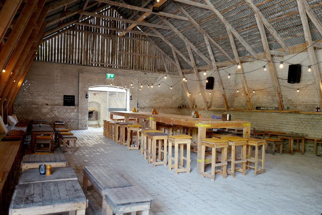 Rett over veien ved de to høye tårnene ligger Kalkladan som huser bar og spisested, samt konserter.