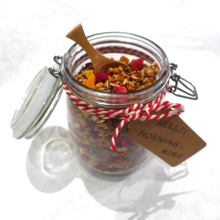 Honningkorn, eller honni-corn som det heter, var frokostblandingen jeg vokste opp med. Søtt, klissete og godt. Men hjelpe meg så usunt. Det renner av sukker! Jeg har laget en sunn versjon som jeg koser meg med til frokost. Den er perfekt til skummet kulturmelk eller yoghurt – og det tar ikke lang tid å lage dette. Lager du en stor porsjon, kan du jo gi bort noen glass til jul.