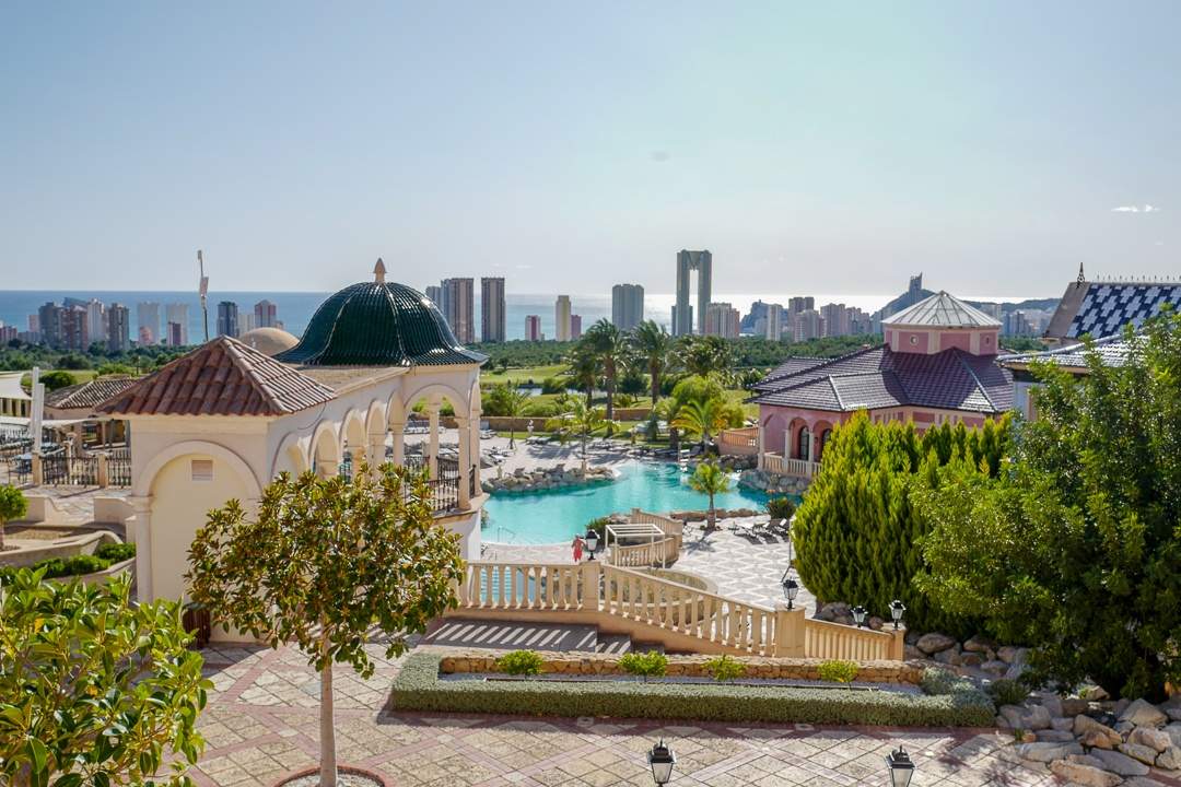 Jeg var heldig å få bo på et hotell som jeg når som helst ville ha bodd på igjen. Melia Villaitana er et lekkert spa/golfhotell som ligger i åsen ovenfor Benidorm. Det er rett og slett dritlekkert dekorert i maurisk stil. Men når man er på pressetur får man aldri tid til å prøve alle fasilitetene på hotellet, men jeg kastet lange blikk i retning svømmebassengene, spaavdelingen og den fine terrassen min som jeg, hvis jeg hadde hatt tid, skulle sittet på og drukket vin.