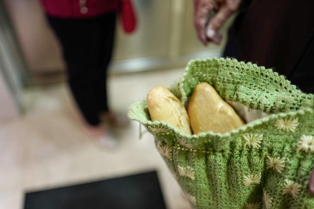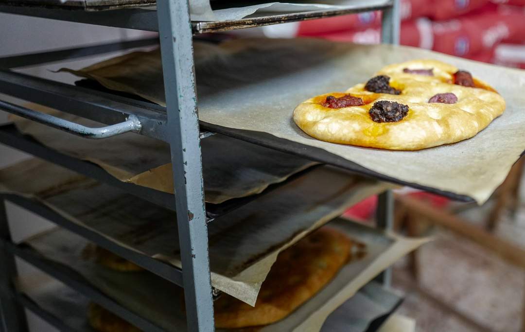 Du kan tenke deg hvilken vidunderlig duft det er i dette lokalet! En konstant kø av mennesker fra landsbyen kommer innom for å kjøpe nystekte brød som de putter i de hjemmelagde brødposene sine.