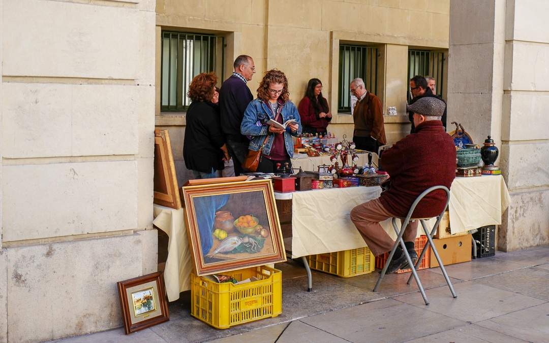 Hver søndag kan man se etter loppeskatter på markedene som finnes rundt omkring i byen. På Placa de la ayuntamiento finner du gamle smykker, bøker, porselen og plater.