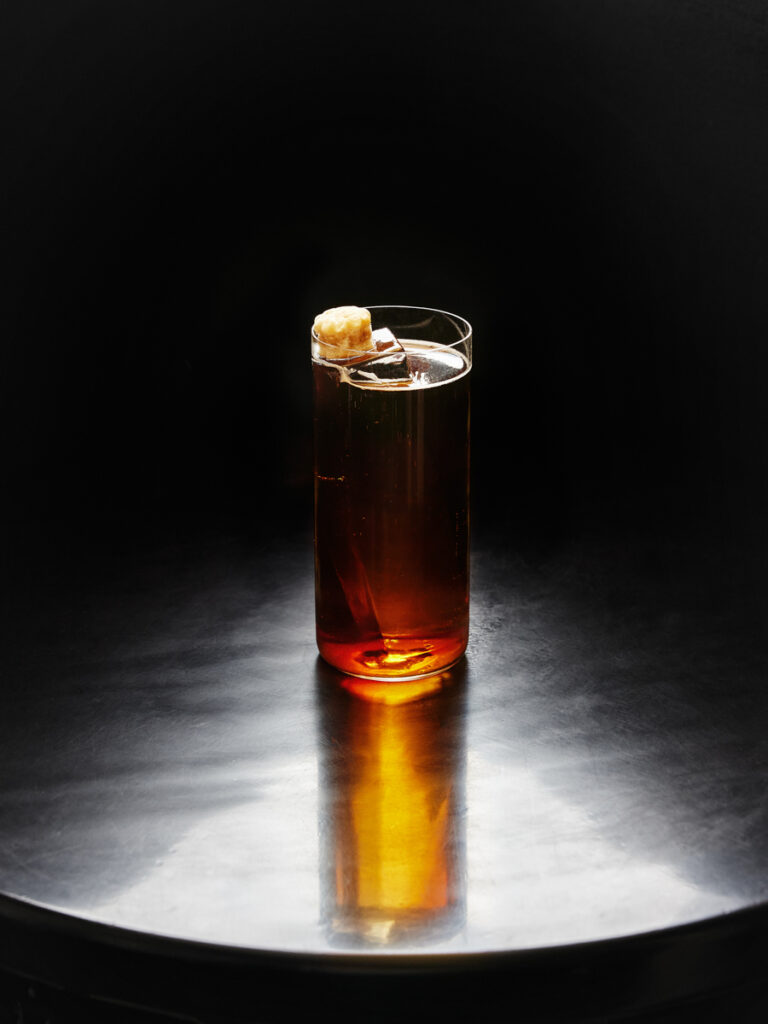 Cherry er en dristig, fløyelsmyk nytolkning av det berømte Manhattan, laget med Buffalo Trace, Merlet Cherry Liqueur, Carpano Dry, mørk sjokolade og en smørvasket finish. Rik på noter av frukt, eik og kakao, paret med en stemningsfull gulvlampe som kanaliserer cocktailens dybde og stille raffinement.