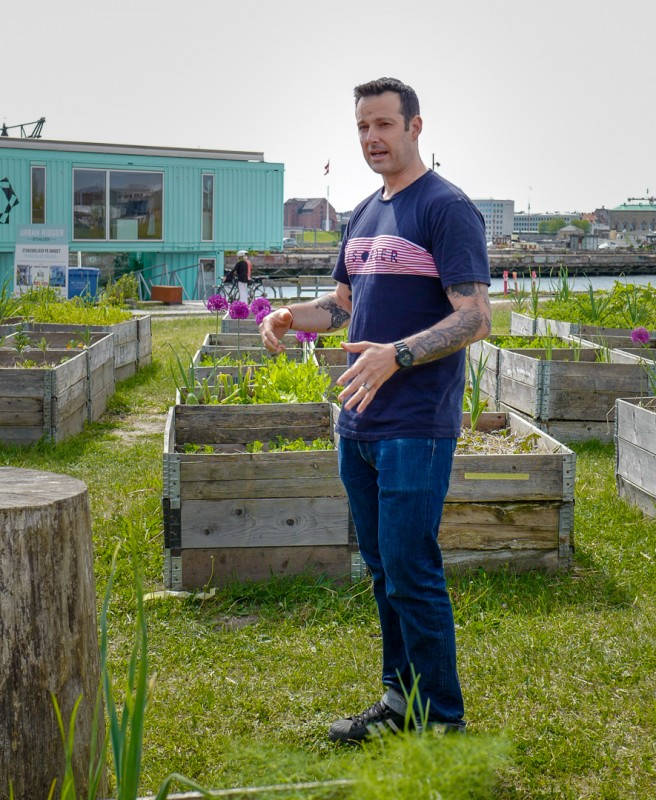 – Vi har også drivhus som gjør at vi kan forlenge sesongene. Her har vi også karper som svømmer rundt i bunnen av drivhuset. De fôres med rester fra kjøkkenet. Fiskene gjødsler jorden i drivhuset gjennom vannet og så renner vannet ned i et filter og så renner rent vann tilbake til fiskene.