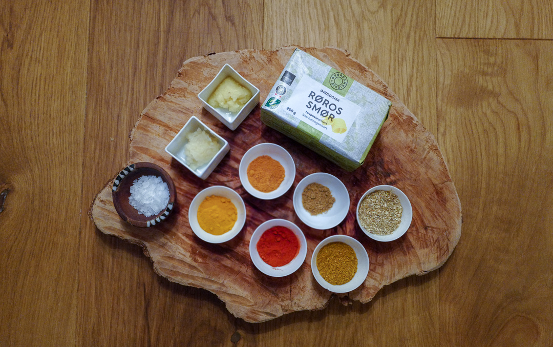 Jeg er kresen når jeg velger smør til denne retten. Smør fra Rørosmeieriet er ikke det billigste i hylla, men det er mer smør for pengene enn du kanskje vet. Smøret inneholder lite vann i forhold til andre merker og det gjør at smørsmaken er mer konsentrert. Dessuten er smaken på på det lavpasteriserte smøret overlegent Og smak er uansett viktigst i matlaging, er det ikke? Smøret er laget på rømme, ikke melk, noe som gir en fantastisk syrlig smak.