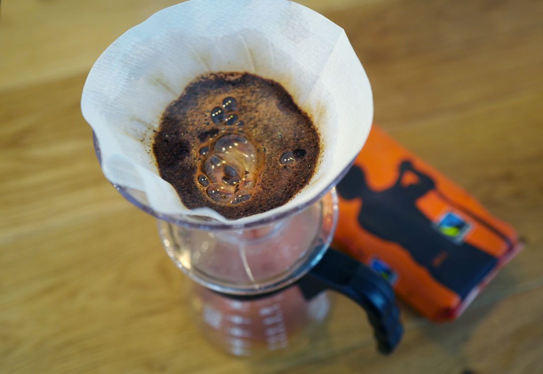 Først av alt brygger du kaffe. Det gjør du slik. Jeg bruker Farmer’s Coffee som er Fairtrade-sertifisert.