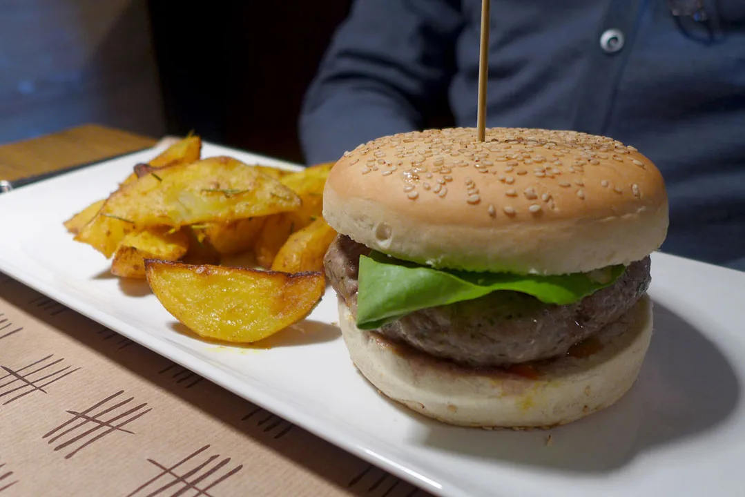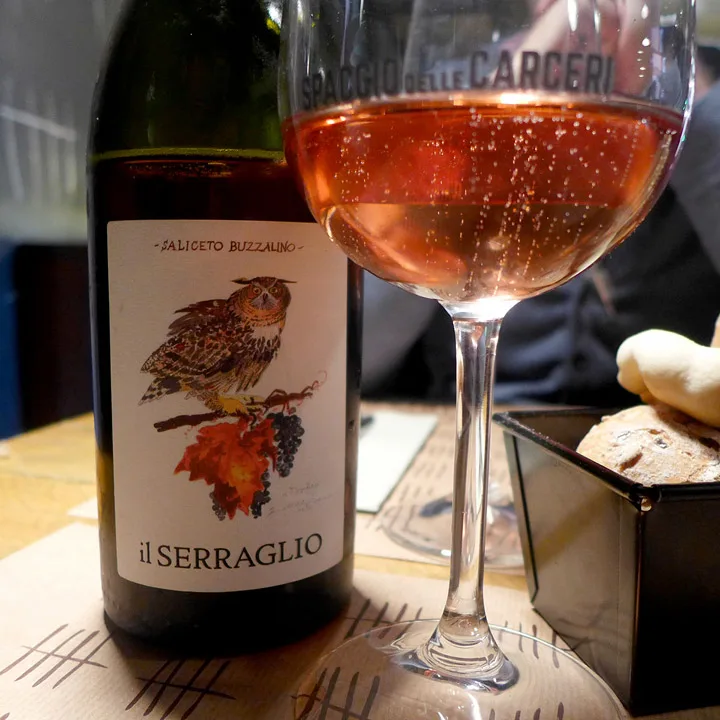 Lunsjen inntas på naborestauranten vår, som viser seg å være et nytt og hipt innslag til byen, Spaccio delle carceri. Dette er et sted med litt annerledes retter slik som husets egen grillede burger med rosmarinpoteter, tajine av kylling, salater og noen spennende sandwicher. Egen vin har de også. Og den er helt fantastisk.