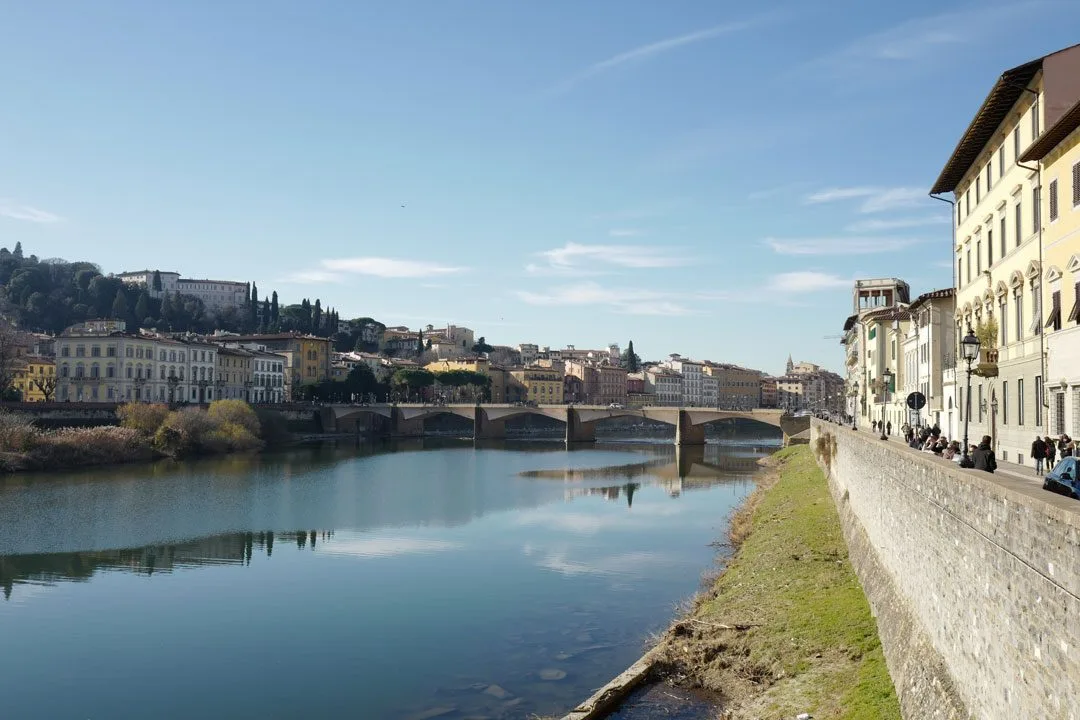 Vi vandrer langs Arno et godt stykke ut av bykjernen. Arild skal ta oss med på en restaurant han liker.
