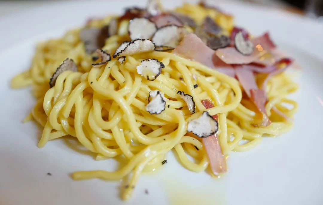 Trattoria Cecarino er en lokal restaurant og den fylles fort opp etter at vi kommer. Vi bestiller trøffelpasta med speck, vongole til Arild og en porsjon kjøttboller på deling. Nydelig! Ost og karamellpudding til dessert.