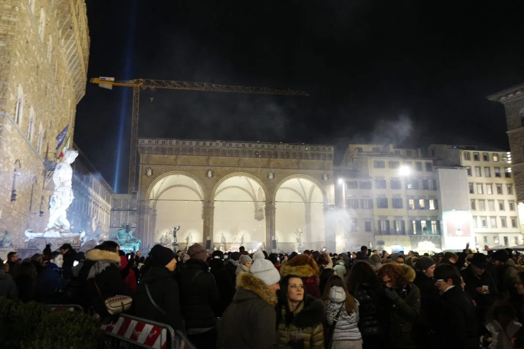 Ok, vi går til Piazza della Signoria for å telle ned til nyttår. Her er det mye folk og veldig mange kinaputter. Skikkelig ubehagelig med all smellingen. Etter tolv er det liksom greit å komme seg tilbake til leiligheten for Firenze er full av fulle folk og mer smelling.