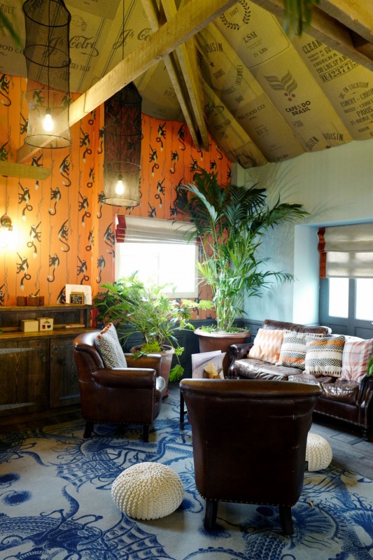 Dagen etter våkner jeg til lyden av fugler og okser. Når jeg tar på meg min knalloransje genser og triller kofferten ut av døren står det to okser og tramper i bakken på andre siden av det lave gjerdet. Enten vet de at jeg spiste broren i går eller så er de bare provosert av fargen på genseren min. Sure er de og jeg stikker i en voldsom fart over til The Vean der de andre har sovet i silkelaken og myke senger.
