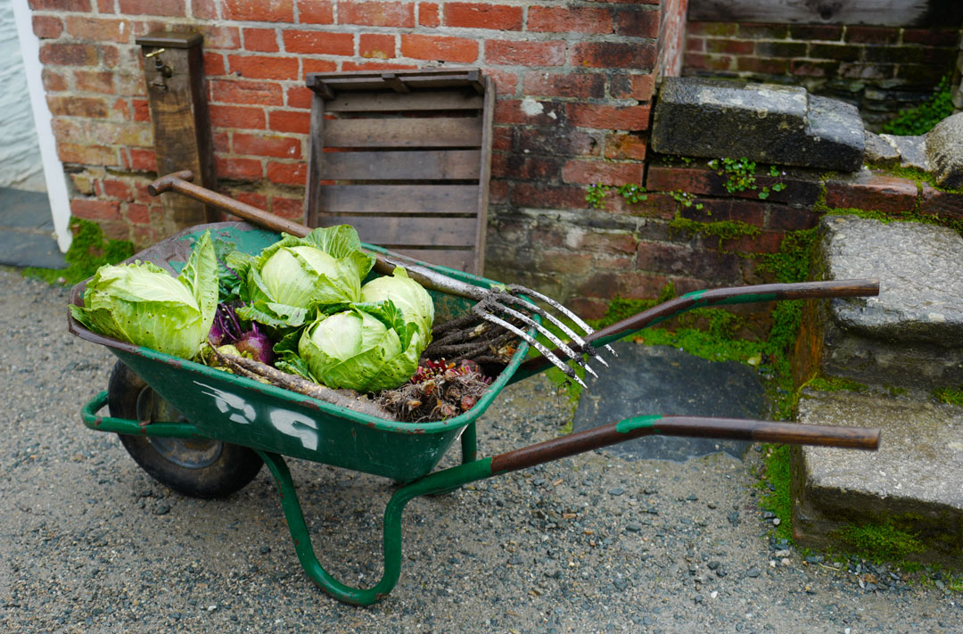 Det dyrkes over 500 forskjellige grønnsaker, frukt og blomster i de forskjellige hagene. I butikken deres kan du kjøpe egenprodusert øl, likører, syltetøy, og sauser. De selger også masse lokalprodusert mat.