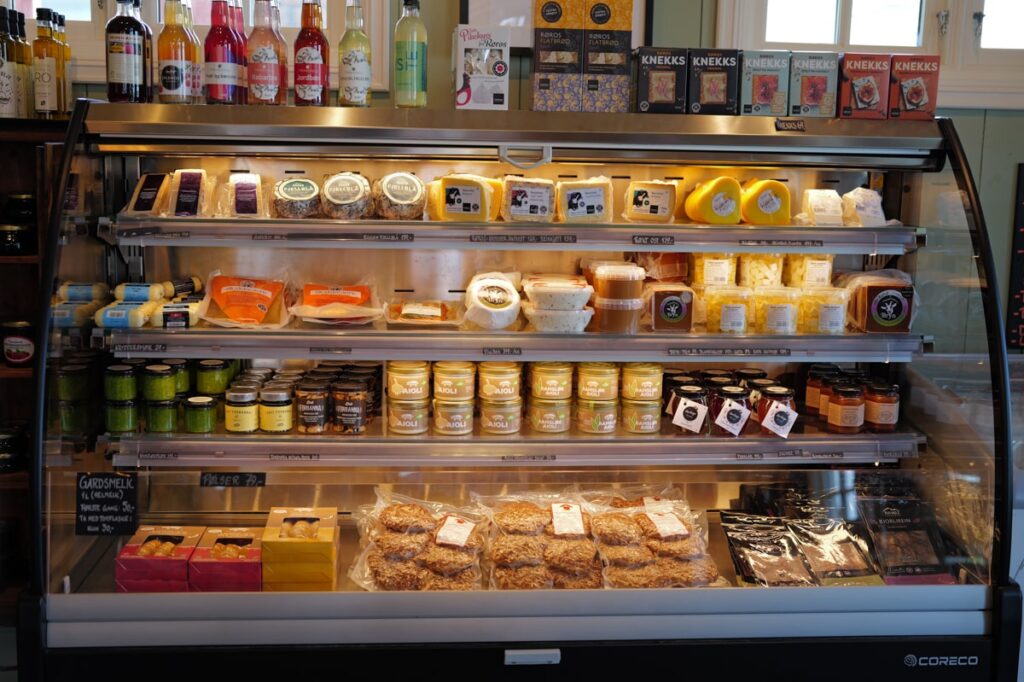Gårdbutikken har ikke bare matvarer, men også mange gaveartikler. – Det er en del av opplevelsen ved å handle i gårdsbutikk, forteller hun. Det er ikke bare damene som kommer i butikken mens mennene sitter i bilen. De kommer også inn og vil se hva de kan kjøpe. Når maten er lokalprodusert og av god kvalitet, så tror jeg betalingsvilligheten er bedre.