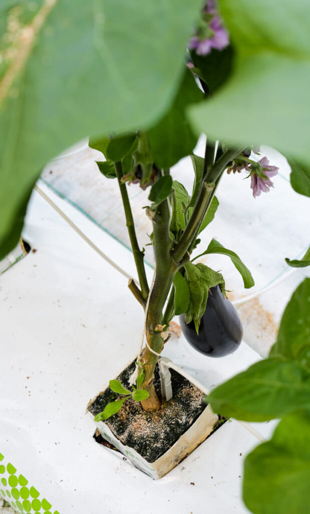 – Og her har vi chili og aubergin, sier hun stolt. – Hvor kult er det ikke med hjemmedyrket aubergin her ved Mjøsa!