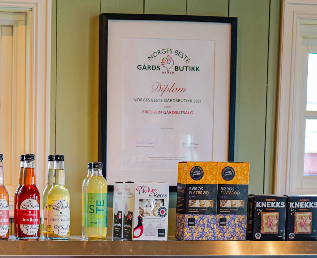 Gjør bruker Facebook og Instagram aktivt og hun har en egen person som har ansvaret for formidlingen. – Det er viktig å vise frem det vi har i butikken og det som er i sesong akkurat nå slik at kundene kan ta turen innom. Og må vi stenge en dag, så gjør vi oppmerksom på det i sosiale medier. Jeg hater når jeg har reist langt og stedet er stengt uten at de har gitt beskjed. Mange legger handlingen i gårdsbutikker til en del av en utflukt og da skal de jaggu bli møtt med åpen dør, forteller Louise som får hjelp av en annen Louise til å holde hjulene i gang på gården. Fredheim Gårdsutsalg var den første vinneren av konkurransen Norges Beste gårdsbutikk i 2021. Konkurransen arrangeres av HANEN.