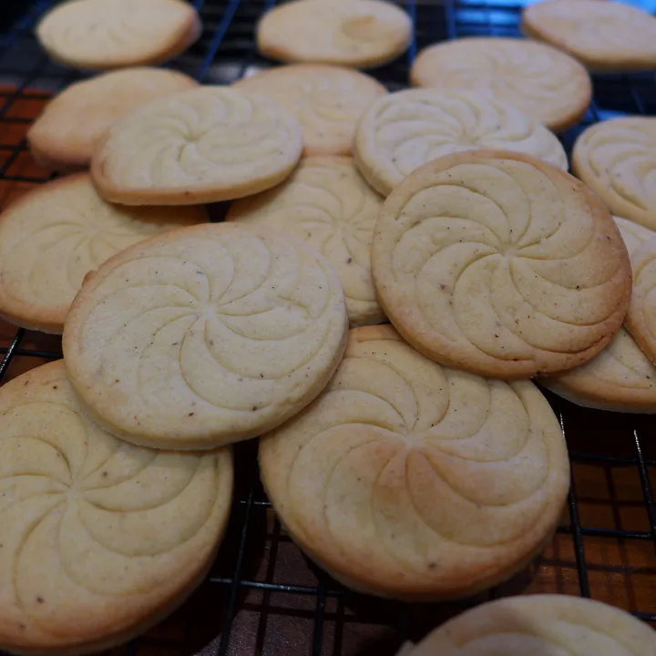 Start med å spiske smør og melis til det er mykt. Tilsett egget og rør mer før du tilsetter vanilje og mel. Form dette til en deig og legg den i plast i kjøleskapet en times tid.
