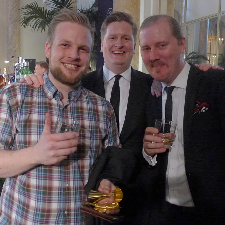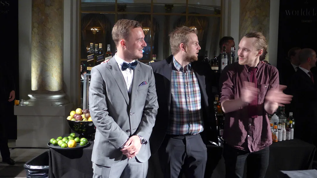 De tre dommerene er: Marian Beke, Nightjar in London, Erik Lorincz, World Class global vinner 2009, Justin Smyth, Ketel One Global brand ambassador. Foto: Klaus BoJørgen gir jernet! Foto: Klaus bo«Hæ? Vant æ?» Jørgen er tydeligvis utrolig overrasket over å bli utnevnt til «Nordens beste bartender». Bartenderkollegaer fra Danmark, Ted Dako og fra Sverige, Karl-Martin Edin (t.h).