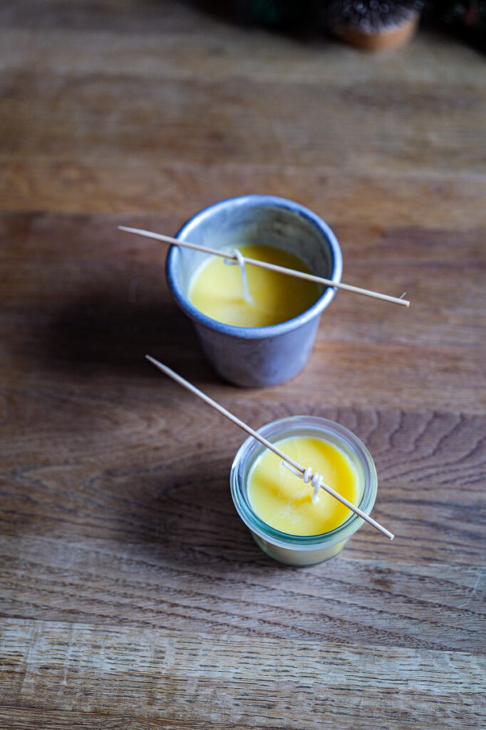 Dette er enkelt og morsomt. Smøret har jeg støpt i form til et lys. Vekene er kjøpt i hobbybutikk.