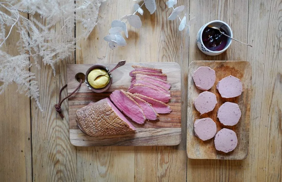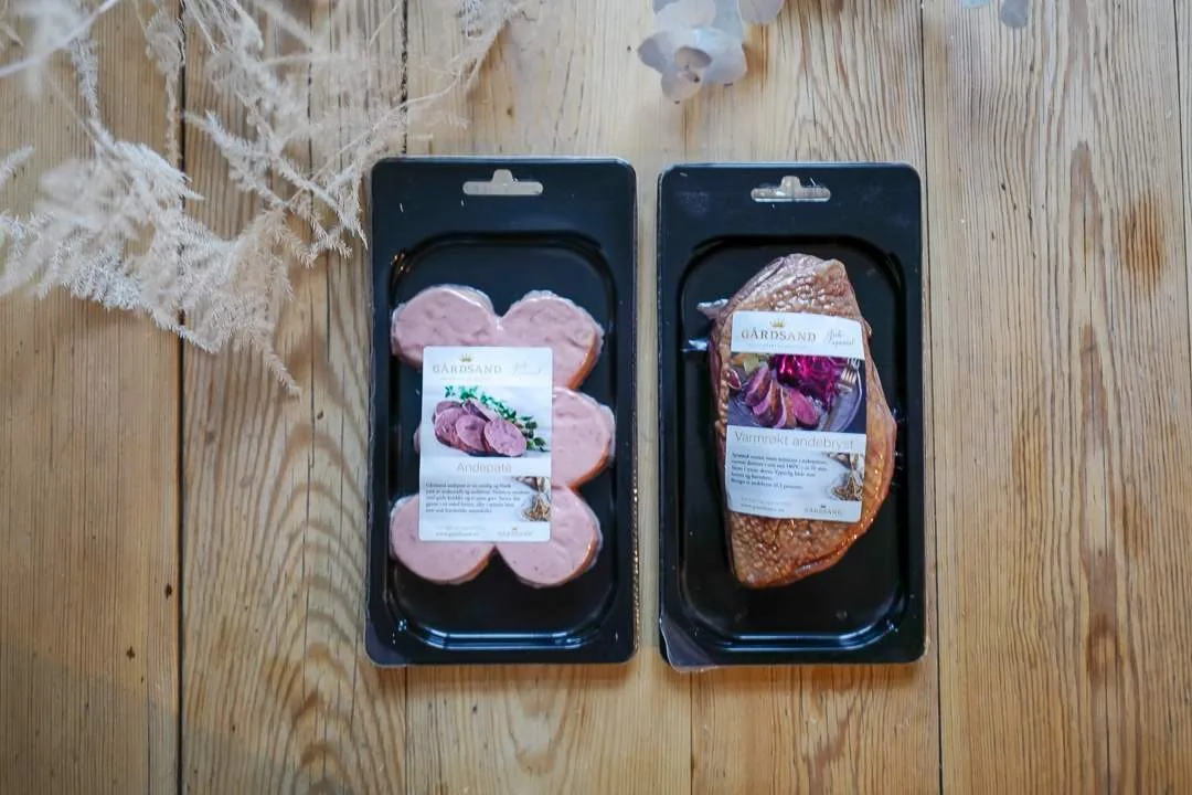Så hva her jeg gjort? Jeg har brukt andepaté og varmrøkt andebryst fra Gårdsand. Og så har jeg brukt noen enkle ingredienser som er deilige til and.