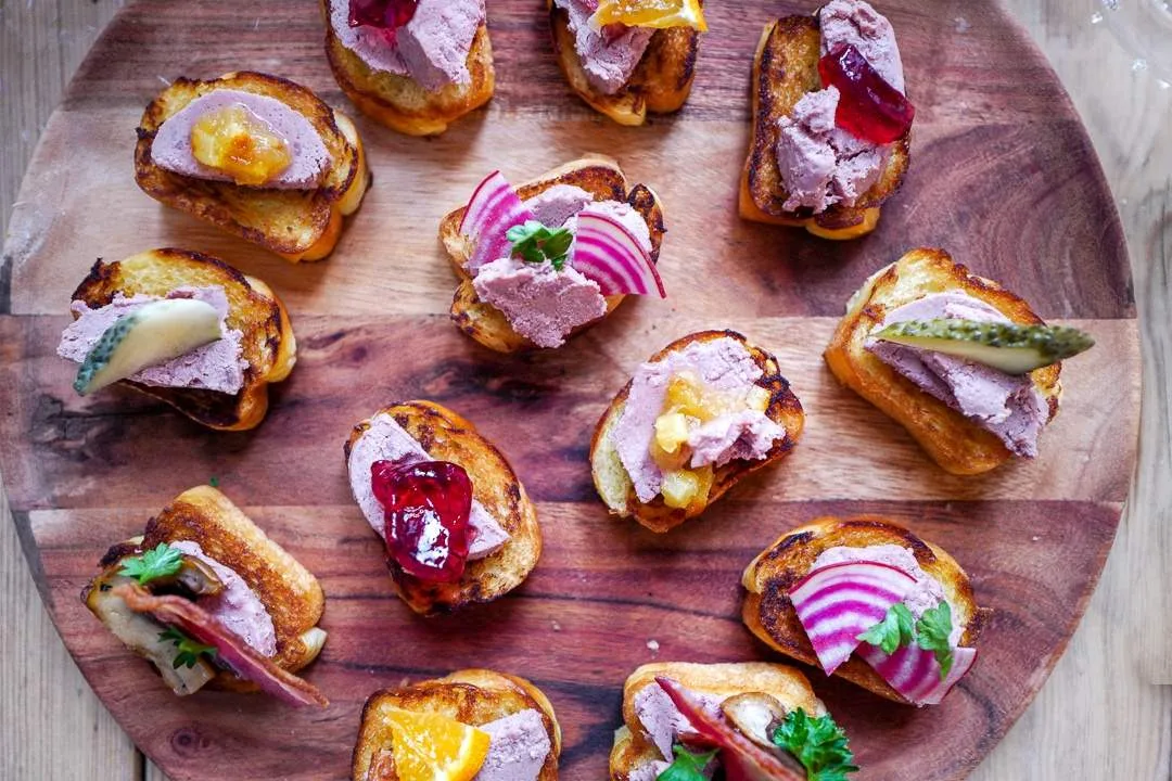 Sprøstekt bacon og champignon er fantastisk til andepatéen. Det samme er gelé av tranebær, rips eller rognebær.