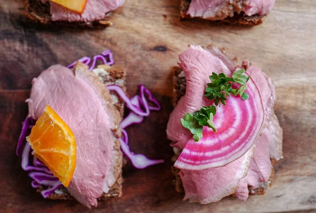 Min hemmelighet for å lage disse smørrebrødene er to vesentlige ingredienser som du faktisk kjøper i butikken: Røkt andebryst og andepaté fra Gårdsand. Dette er fantastiske produkter som er enkel å bruke og enda enklere å like. Patéen er laget av andelever, andeconfit og krydder. Dette er bedre enn julepostei i min bok.
